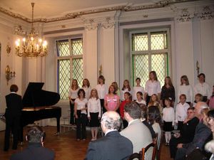 :: Garās diena noslēgumā — koncerts Lielajā zālē. Skandinieki pārsteidz ar zīdainīti (nav vis lelle!), kas piešķir vakaram pavisam neparastu auru. Itin avangardiski dzied koris Austrums, pēc tam dzirdam savdabīgu divu koru sadziedāšanos. Koncerta un visas dienas izskaņā — dundadznieku pateicības veltes rīdziniekiem un Valda Rūmnieka, rakstnieku un biedrības priekšsēža izsniegti atzinības raksti daudziem jo daudziem dundadzniekiem. Bet vēl lielāku pateicību mazliet vēlāk saņem diriģente Sandra Lielanse. Kordiriģents Arnolds Skride, slaveno māsu tēvs, uzteic mūsu bērnu un jauniešu dabiskumu un to, ka laukos rodams tautas gara turpinājums.