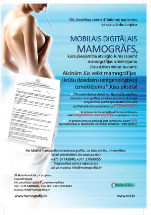 Pierakstīties var pa tālruņiem 67142840 un 27866655, tuvākas ziņas: www.mamografija.lv vai rakstot uz e-pastu info@mamografija.lv.