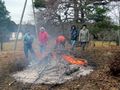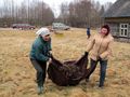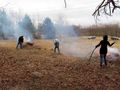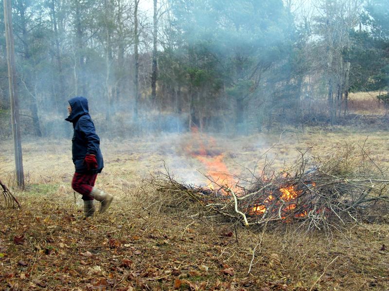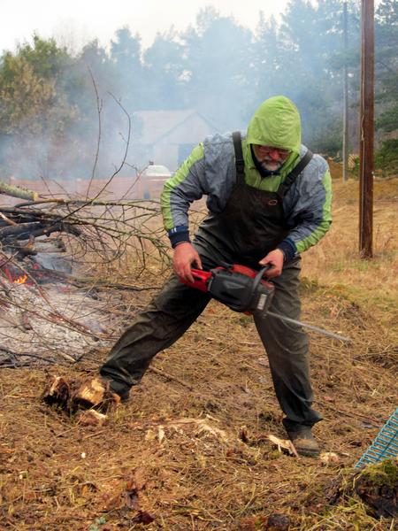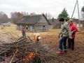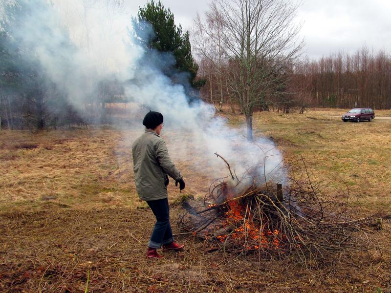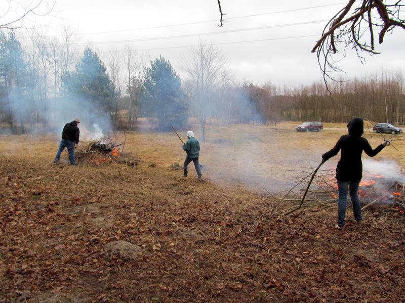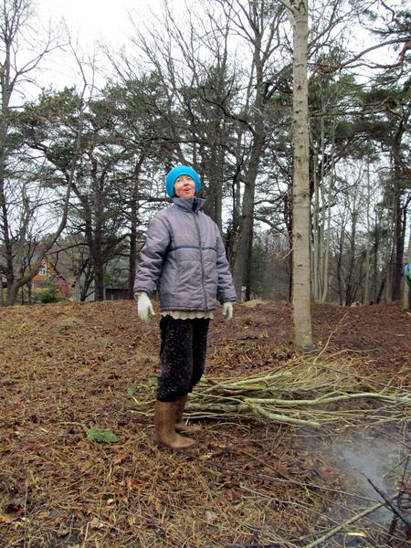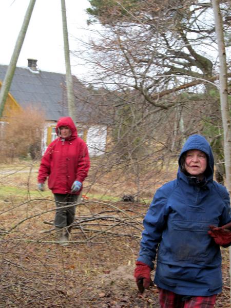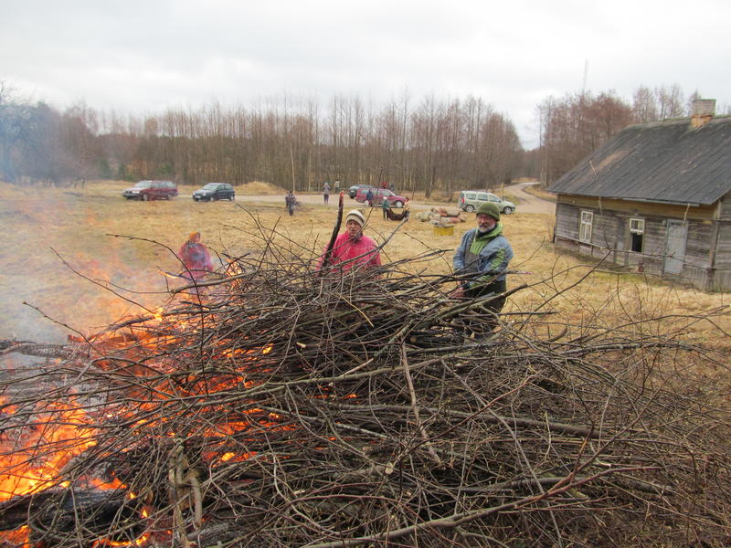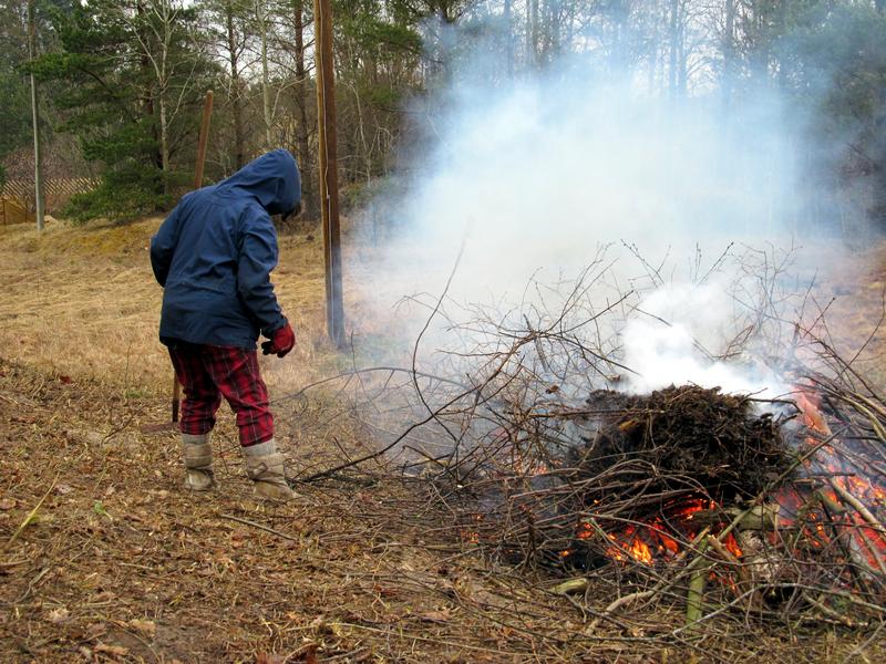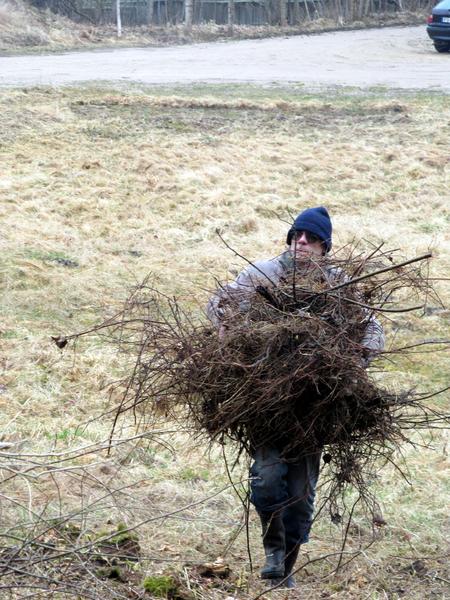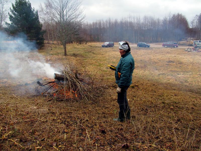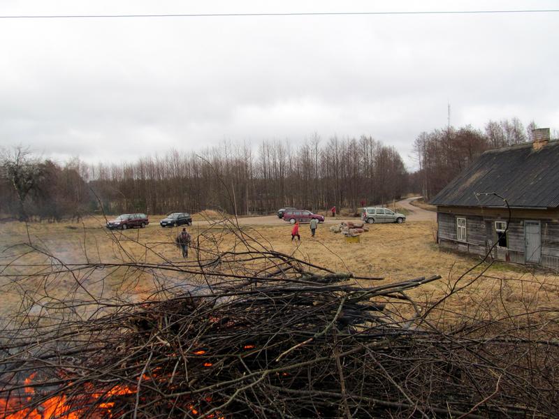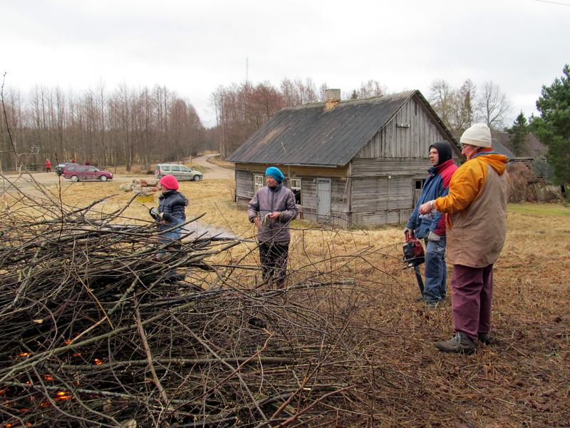 Ko paveicām? Nopļāvām pieskas, izzāģējām vecos ceriņus, sagrābām zarus un lapas, visādas krodas un ņogas, visu, ko varējām, to sadedzinājām, un šķiet, ka nekādus pārpalikumus aiz sevis neatstājām, izņemot viena talcinieka aizmirstu grābekli.