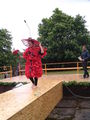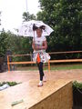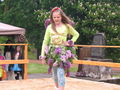 Starp koncertiem laukumā notika arī tradicionālā Pils dienas modes skate, šoreiz ar nosaukumu — «Smuks no dabas!». Ja kultūras dzīves organizētāja Ruta Bērziņa, tērpusies garā, zaļā kleitā, ar zaļiem pavedieniem veiksmīgi saistīja kopā pirmo koncertu, kurā viņas dēls Raitis visus pamācīja, kā atkauties no krokodila, tad modes skatē viņa zaļsvītrotā halātā izteica dažādas vēlmes attiecībā uz tērpiem, bet Raitis piedāvāja viņai apģērbu variantus. Var tikai apbrīnot kuplo modes skates dalībnieku un deju grupas «Sensus» lielo meiteņu izturību, jo reizēm lija, aukstums un stiprais vējš nemitējās nemaz, bet modes demonstrētāji pārsvarā bija saģērbušies ļoti plāni, daža laba dalībniece staigāja pat basām kājām. Ko padarīsi — skaistums vai stila ieturētība prasa upurus! Taču skatītāji varēja izbaudīt mūsējo radošo izdomu un izpildījumu. Mani savaldzināja personificētie jūras un saules tērpi. Ļoti patika svārki no lapām, ko rotāja maijpuķītes, lapu un ceriņziedu svārki komplektā ar ceriņziedu sirsniņu mugurpusē, krāsaino balonu kleita, ugunīgā sarkano salvešu kleita ar cepuri, kleita, ko greznoja vienreizlietojamie šķīvīši baltā un dzeltenā krāsa, un pieskaņotu šķīvīšu cepure. Par vienotu tērpa ansambli uzteicama arī Daina Miķelsone un viņas dēls Rūdolfs, amizants bija lielais taurenis.