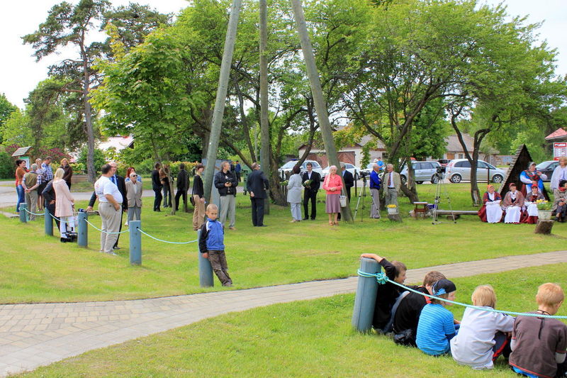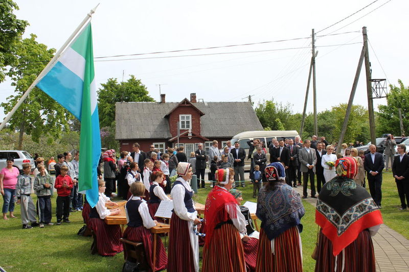 Garākā un nozīmīgākā tikšanās bija sapostajā Lībiešu tautas namā Mazirbē. Te atskanēja lībiešu himna, runas teica abu valstu prezidenti, notika savstarpēja dāvanu pasniegšana. Mūsu prezidents Andris Bērziņa kungs uzsvēra, ka šeit, līvu krastā, viņš jūtoties kā atbraucis mājās. Ar Igaunijas prezidentu abi esot pārrunājuši iespēju — citreiz Igaunijas valsts vadītājs varētu šurp atbraukt pa jūru, ja vien būtu laivu piestātne… Bērziņa kungs uzsvēra, ka ideja par piestātni esot pavisam nopietna… Vēl mūsu Valsts prezidents bilda, ka mazo tautu spēks ir tās daudzveidības izpausmēs.