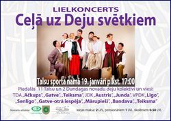 19. I plkst. 17.00 Talsu sporta namā lielkoncerts «Ceļā uz Deju svētkiem».