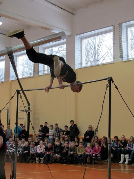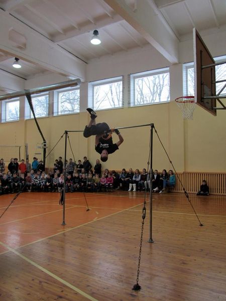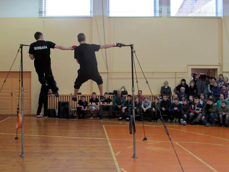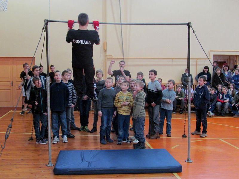 26. II «Lielās skolas» sporta zālē skatītāji ar neviltotu sajūsmu uzņēma četrus Dundagas ielu vingrotāju — Dāvja Vērdiņa, Toma Šeptes, Arta Skarbinieka, Emīla Blumberga, kā arī viņu jaunāko biedru Nika Kinčius, Endija Landmaņa un Krista Lejas — rādītos trikus.
