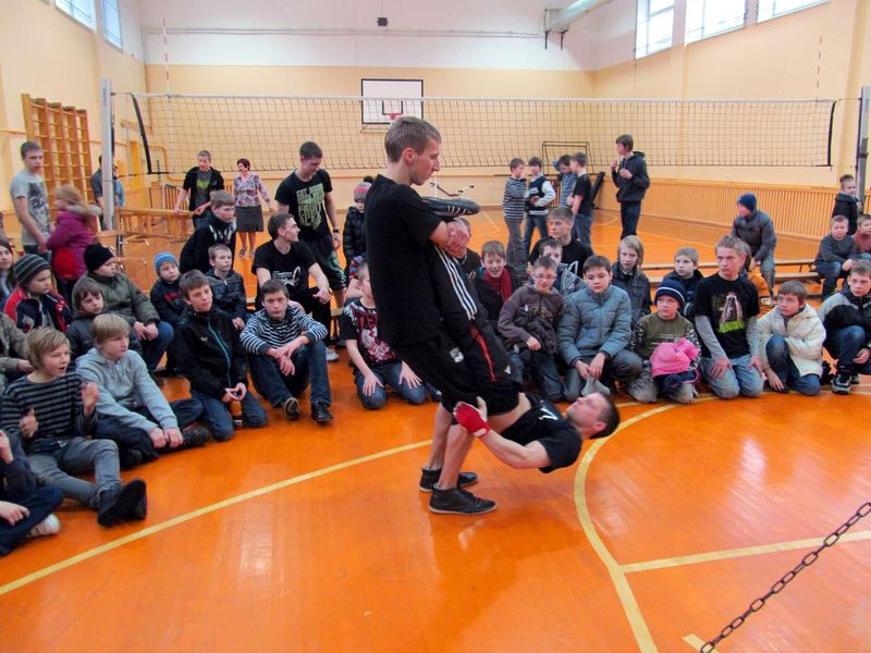 Kad pasākums beidzās, ielu vingrotāji aicināja pulcēties tos, kas vēlētos turpmāk trenēties ielu vingrošanā. Gribētāju starp zēniem netrūka.