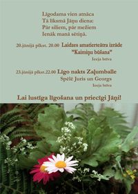 23. VI plkst. 22.00 Dundagas parkā Līgo nakts zaļumballe. Spēlēs Juris un Georgs. Ieeja brīva.