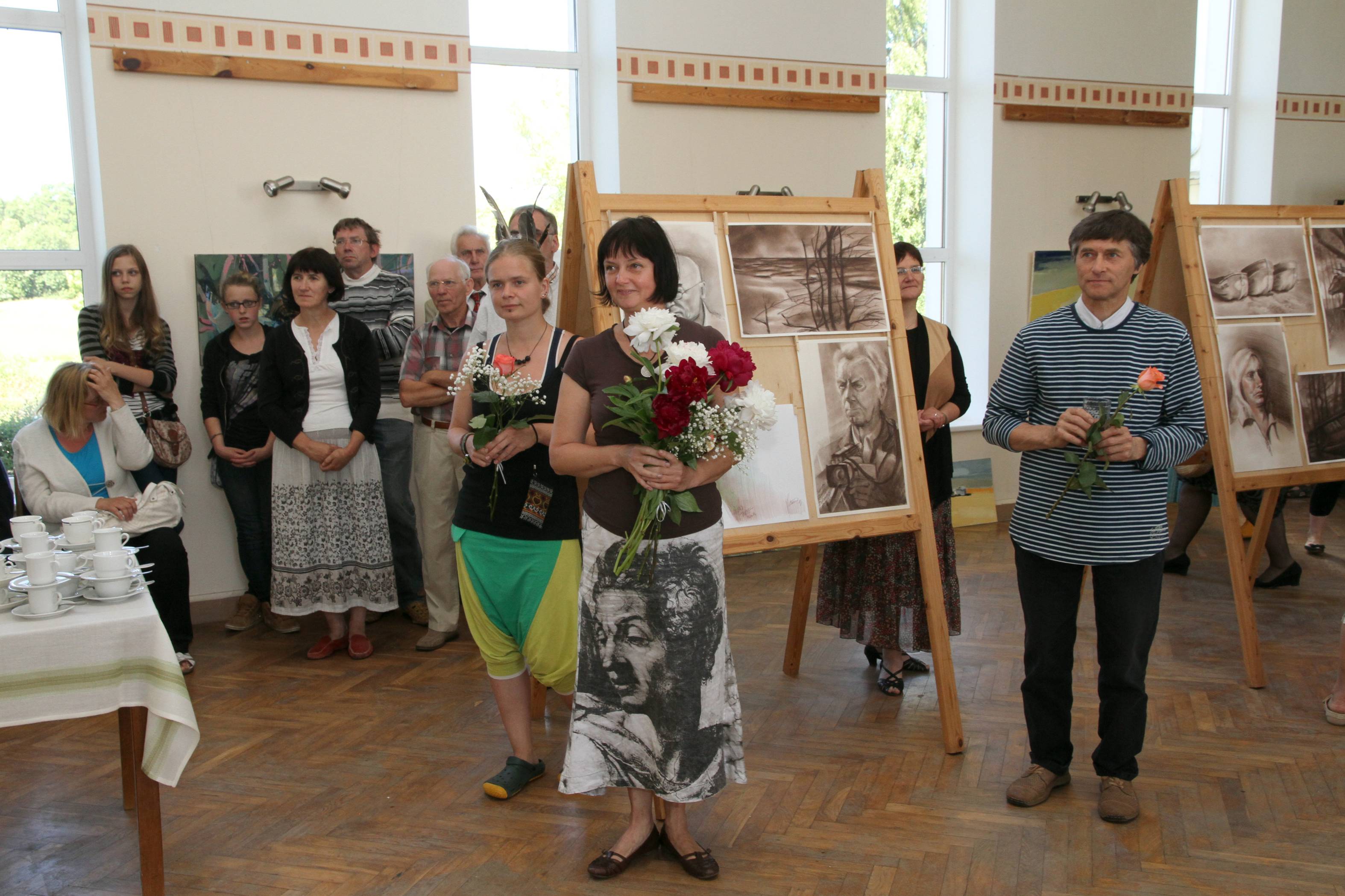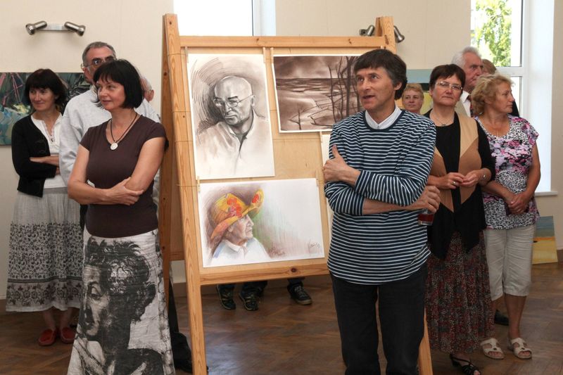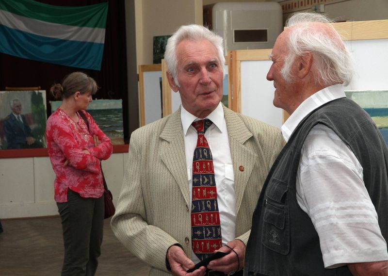 Nu bet gleznas un skatītāji! Aptuveni 60 klātesošo vēroja un savā starpā sprieda par vismaz tādā pašā skaitā izstādīto darbu, turklāt publikas vidū bija gan domes deputāti Aldons Zumbergs, Gunta Abaja un nule ievēlētais domes priekšsēdētājs Gunārs Laicāns, gan Kolkas un Rīgas lībiešu grupas pārstāvji, gan bijušais Dundagas vidusskolas direktors Māris Pētersons, gan nupat Mazirbes rekolekciju centrā dzīvi un darbu sākušais Kārlis Irbe. Bija pārstāvētas visas paaudzes, sākot no vismazākajiem jāņubērniem un beidzot ar sirmajām galvām, tostarp pašu gleznu prototipiem. Tā, piemēram, kapteinis Visvaldis Feldmanis varēja vērtēt savu portretu vairākos izpildījumos. Līdztekus ļaudīm gleznās bija tverta jūrmalciemu daba, laivas, pat Vaides ciema vienīgā govs, taisnība, laikam gan ne zilā.