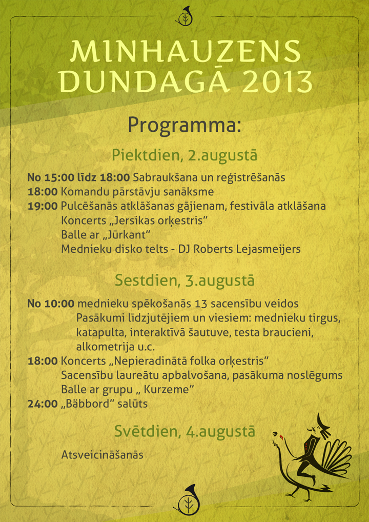 No 2. līdz 4. VIII Dundagā notiks 15. Latvijas mednieku festivāls «Minhauzena svētki 2013».