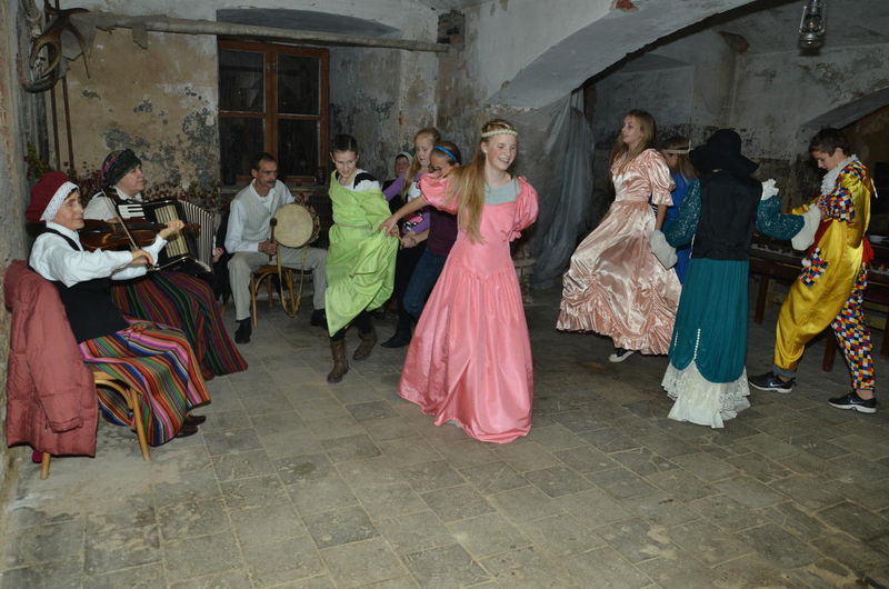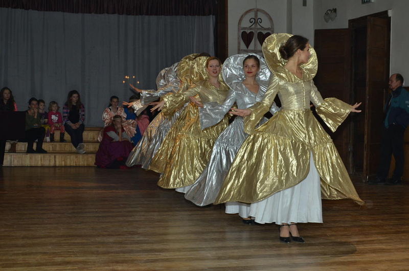 Mazliet savādais samaksas veids drīz vien tapa skaidri saprotams. Ap pulksten deviņiem vakarā pēc vecā stila durvis vēra izrīcību zāle. Apsviedīgais Gints no Talsiem tūlīt ķērās pie deju mācīšanas. Lūdzu, visi drosmīgie, stājamies polonēzei! Dūšīgo bija gana, un Ginta izveicība un smaidīgums iekaroja klātesošo sirdis, un gan dancotāju, gan skatītāju bija ne mazums! Baha mūzikas pavadībā Gints visiem interesentiem vēl iemācīja kādu deju, bet jaukus un dažādus deju priekšnesumus sniedza Talsu pūtēju orķestra dejotājas — gan no Baroka laikmeta pūra, gan ugunīgus mūsdienu ritmus. Bravo! Skaidrs, ka pēc šīm nodarbēm vēders prasīja zupu, savukārt nupat iegūtajām deju prasmēm vajadzēja ļaut šo ēdienu nopelnīt.